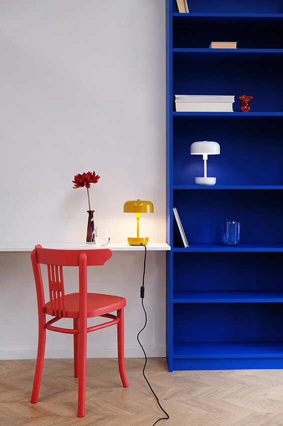 Haipot to urocza lampa stołowa, dostępna w wielu pięknych kolorach, w tym niebieskim, białym, żółtym i różowym. Wszystkie wnoszą świeży powiew do wnętrza i pasują w wielu miejscach, od parapetu po stolik nocny.