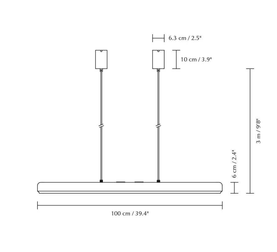 Hazel Branch dzięki swojemu smukłemu designowi jest idealny jako oświetlenie nad stołem jadalnym i może być również używany jako lampa kuchenna lub na przykład w sali konferencyjnej. Podłużna lampa jest zarówno funkcjonalna, jak i elegancka, z nieoślepiającym źródłem światła LED i umożliwia regulację temperatury barwowej i intensywności światła za pomocą dwóch przycisków na górze klosza.