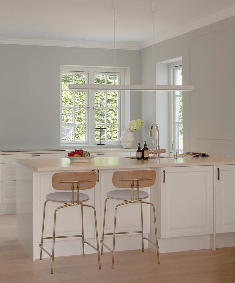 Hazel Branch z jego smukłym designem jest idealny jako oświetlenie nad stołem jadalnym i może być również używany jako lampa kuchenna lub na przykład w sali konferencyjnej. Podłużna lampa jest zarówno funkcjonalna, jak i elegancka z bezodblaskowym źródłem światła LED i daje możliwość regulacji temperatury barwowej i intensywności światła za pomocą dwóch przycisków na górze klosza.