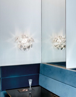 Hope jest inspirowana tradycyjnymi żyrandolami kryształowymi, które Luceplan zreinterpretował. Kinkiet Hope składa się z materiałów takich jak poliwęglan, a struktura kloszy wykonana jest z polerowanej stali nierdzewnej. Dodatkowo lampa posiada pryzmatyczne soczewki, które odbijają światło w sposób krystaliczny w pomieszczeniu.