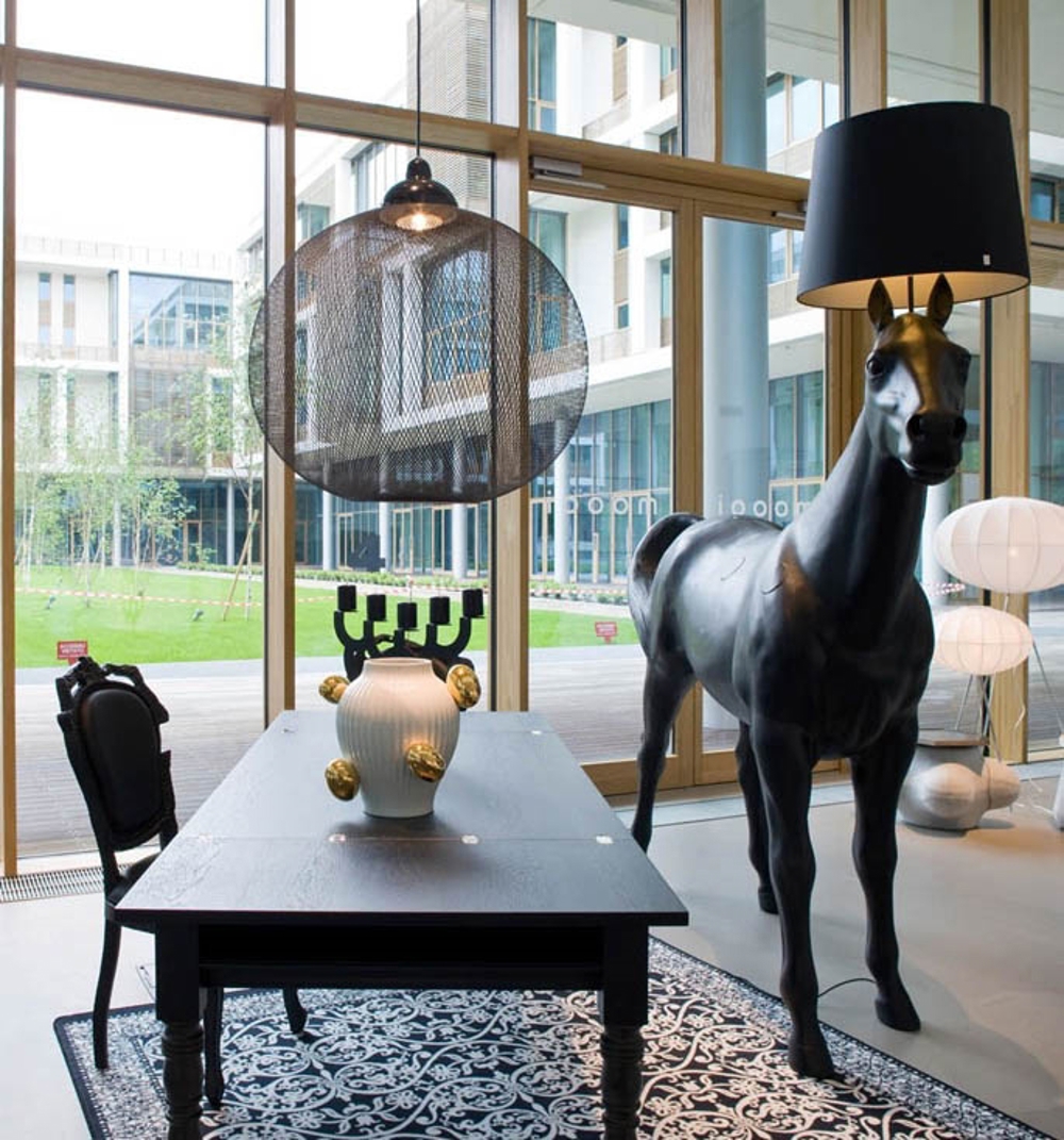Niezwykle unikalna Horselamp ma naturalny rozmiar konia. Horselamp jest częścią szwedzkiej grupy projektowej Front, która wspólnie z Moooi stworzyła kolekcję zwierząt składającą się ze stołu-świni i lampy-królika, oprócz tej wyjątkowej lampy-konia.