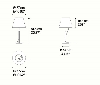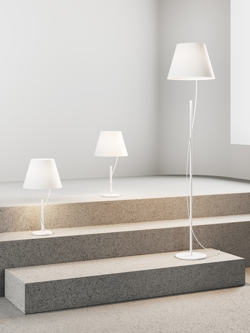 Hover jest dostępny zarówno jako lampa stołowa (wysokość: 51,2 cm), jak i lampa podłogowa (wysokość: 149,2 cm).