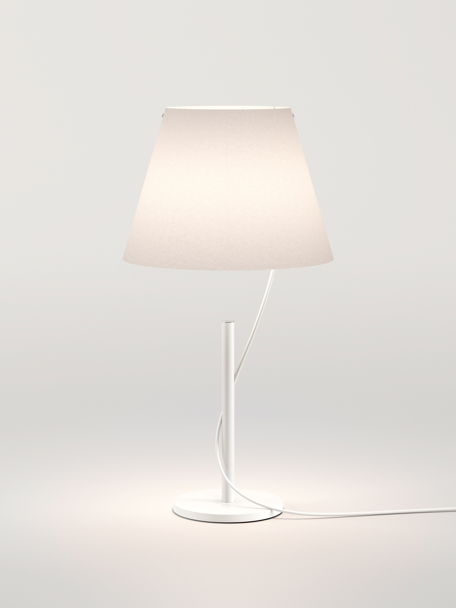 Lampa stołowa Hover została zaprojektowana z kloszem, który wydaje się unosić nad korpusem lampy - połączony jedynie pojedynczym kablem, który biegnie przez trzon i wychodzi z drugiego końca. Nadaje to lampie lekkości w wyrazie.