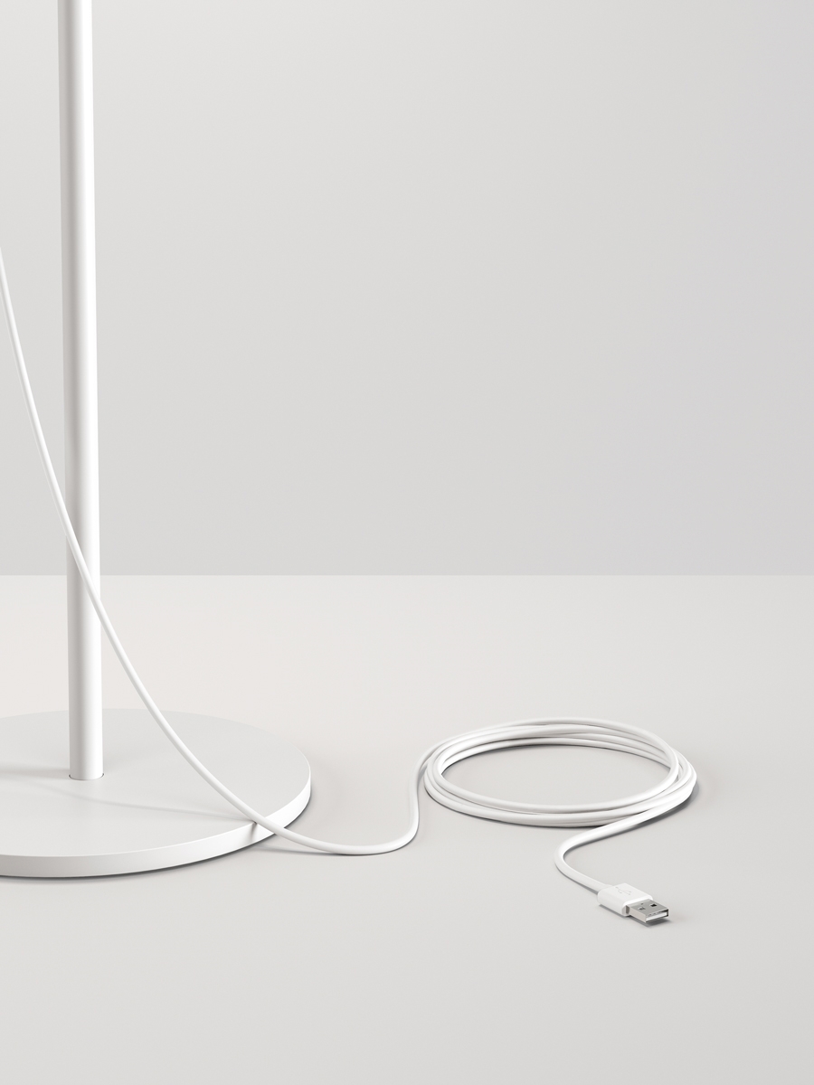 Projektant starannie wkomponował wszystkie funkcje techniczne, które normalnie znajdują się na zewnątrz lampy - w wewnętrznej strukturze lampy. Dodatkowo zasilanie odbywa się za pomocą kabla USB.