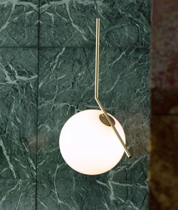 IC Light to seria lamp składająca się z kinkietów, lamp sufitowych, lamp podłogowych, lamp stołowych i lamp wiszących, gdzie materiałem jest matowy mosiądz, chrom lub matowa czerń z białym opalowym szkłem.