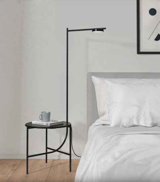 Igram lampa podłogowa i stolik mają sprytny i niezwykle funkcjonalny design, który można wykorzystać w wielu miejscach w domu i hotelach.