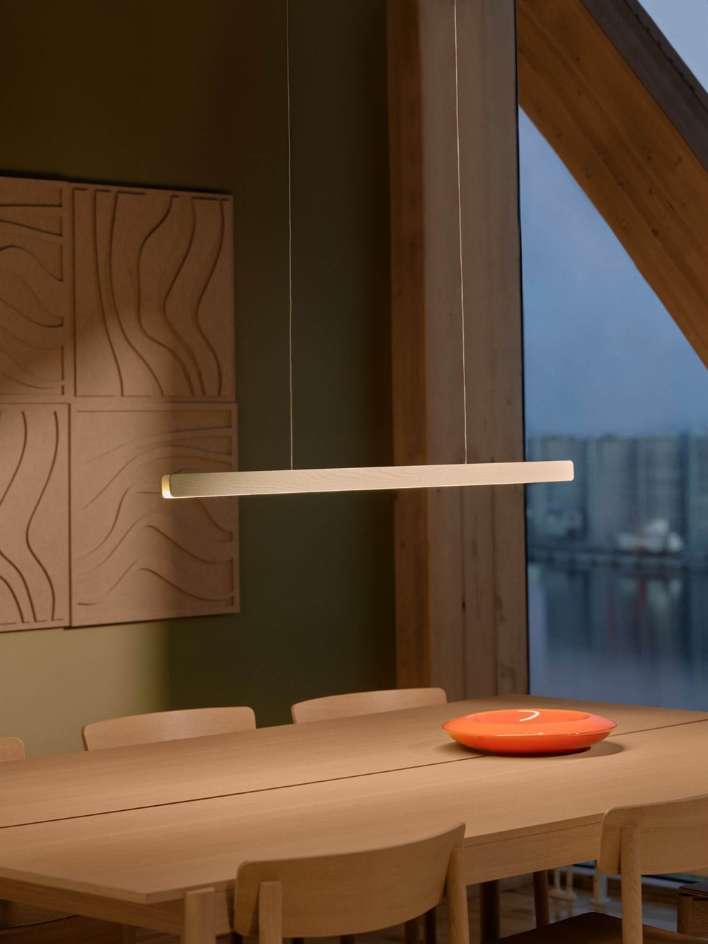 Smukła lampa wisząca Ilgas ma charakterystyczny skandynawski design, który elegancko łączy naturalne materiały, takie jak drewno, z nowoczesną funkcjonalnością. Prosta, stylowa forma zapewnia przyjemne, ciepłe światło i świetnie sprawdzi się nad stołem w jadalni, wyspą kuchenną lub w strefie wypoczynkowej.