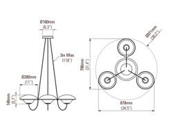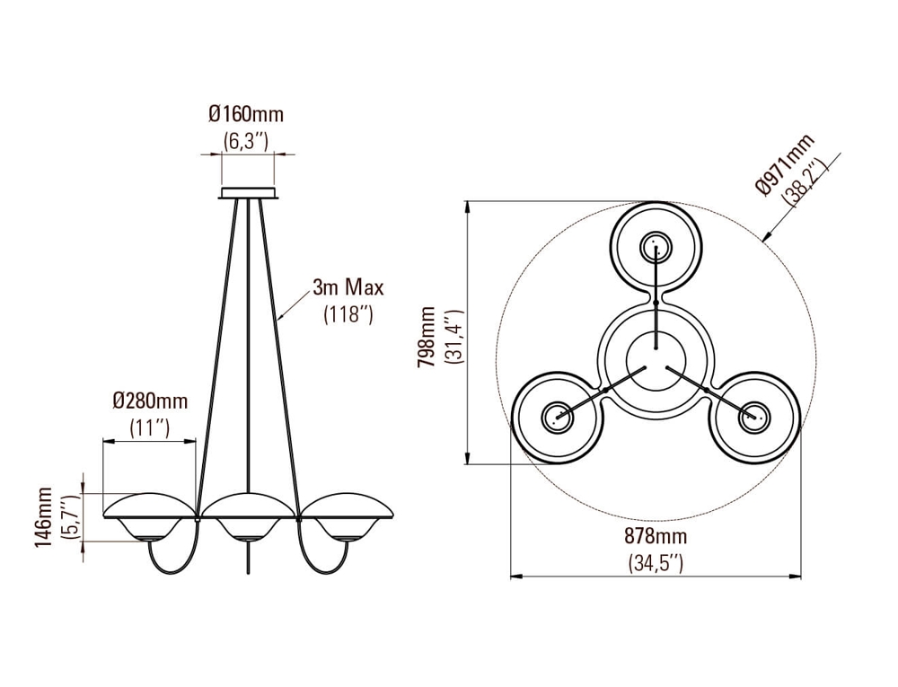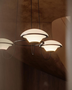 Użyj In The Air jako oświetlenie nad stołem lub jako elegancki dodatek do wystroju przedpokoju lub sypialni. Żyrandol dostępny jest z trzema lub sześcioma kloszami.