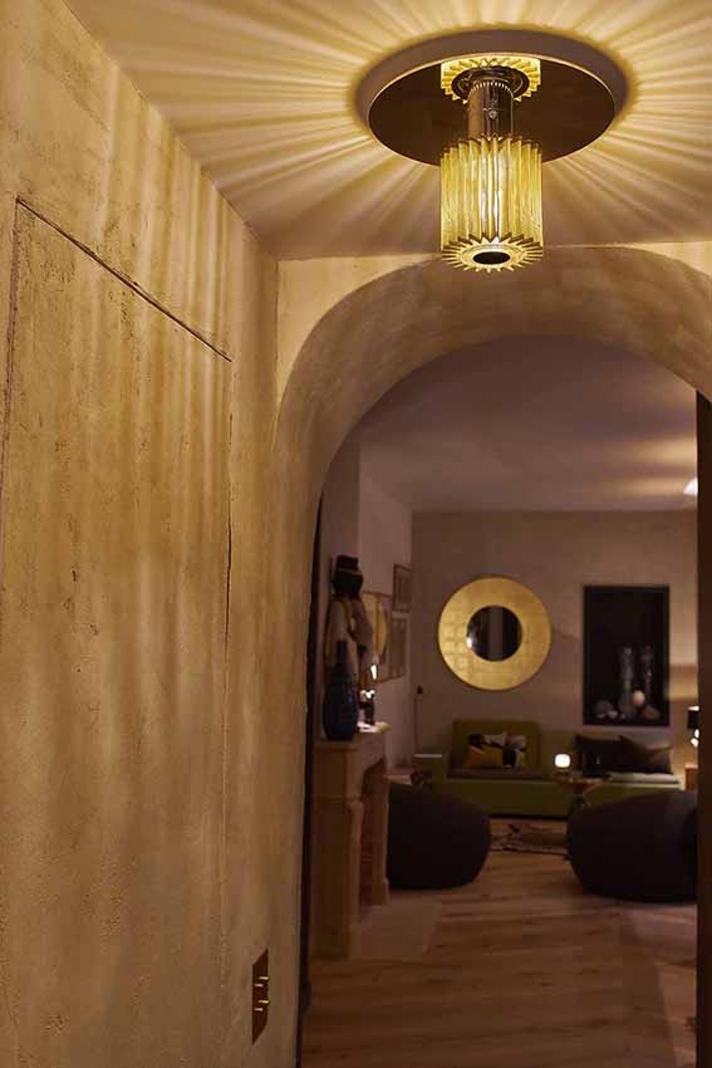 In The Sun 270 kinkiet/plafon, złoty od DCW éditions – zaprojektowany przez Dominique Perrault & Gaëlle Lauriot-Prévost.