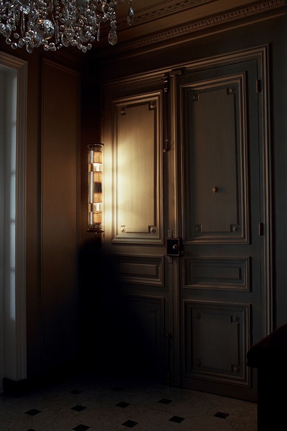 In The Tube kinkiet 120-700, złoty z złotą siatką od DCW éditions - zaprojektowany przez Dominique Perrault & Gaëlle Lauriot Prévost.