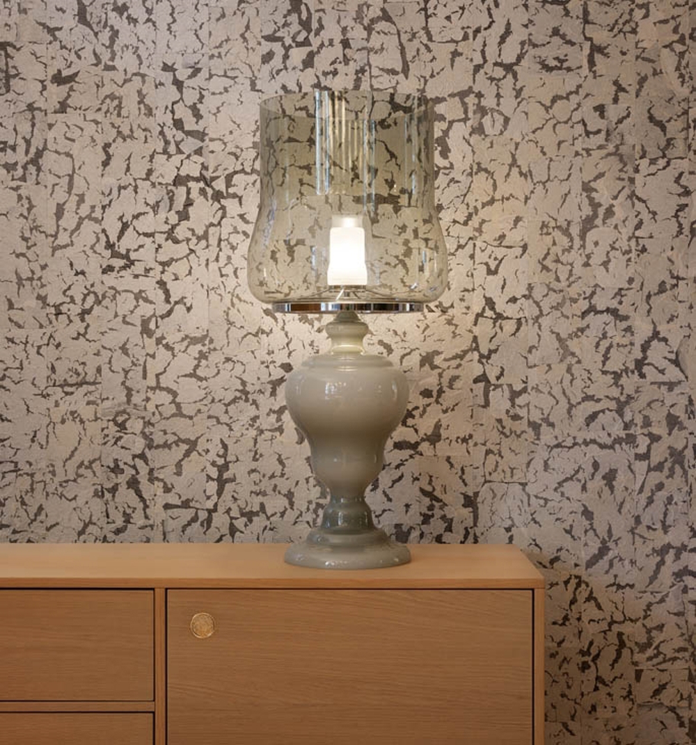 Wyjątkowa lampa stołowa Kaipo TOO wykonana jest z ręcznie formowanego szkła weneckiego, które nadaje lampie elegancki charakter.