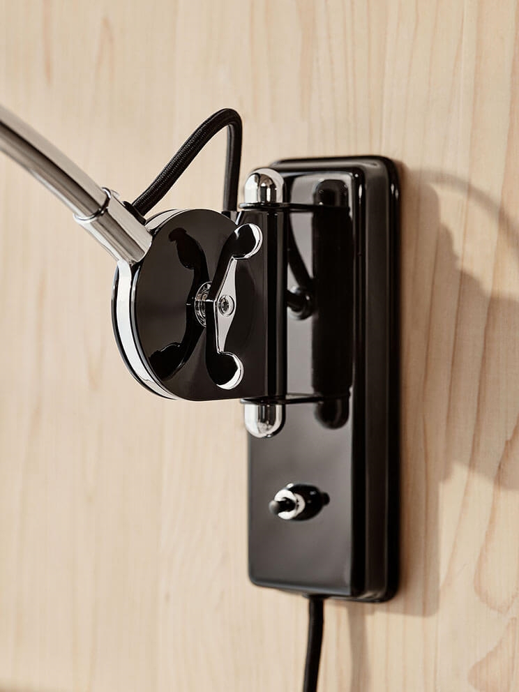 KAISER idell 6559-W dostępna jest w trzech różnych kombinacjach kolorystycznych – biała z regulowanym ramieniem lampy w chromie, czarna z ramieniem lampy w chromie i matowa czarna z ramieniem lampy w mosiądzu.