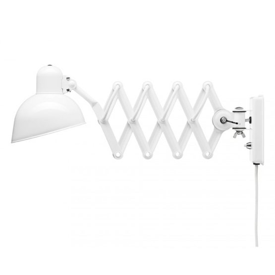KAISER idell 6718-W, lampa nożycowa, to rozwinięcie starej i oryginalnej lampki nocnej, KAISER idell 6722-T. KAISER idell 6718-W jest wyjątkowy i emanuje solidną jakością oraz pierwszorzędnym rzemiosłem. KAISER idell 6718-W to stylowy, prosty i elegancki kinkiet oraz lampka nocna z kloszem ręcznie lakierowanym na wysoki połysk, a chromowane części lampy są ręcznie polerowane i lutowane srebrem.