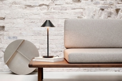 Louis Poulsen Keglen lampa stołowa z podstawą, czarna - zaprojektowana przez Jakoba Lange - BIG Ideas.