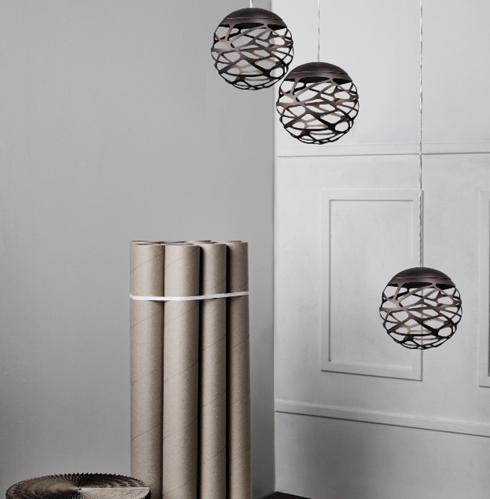 Laserowo wycinany klosz Kelly Cluster pozwala światłu swobodnie przepływać, tworząc piękną grę w pomieszczeniu, w którym jest umieszczona. Lampa daje przyjemne światło, dlatego warto umieścić ją w grupie nad stołem jadalnym lub zawiesić w rzędzie nad stołem kuchennym.