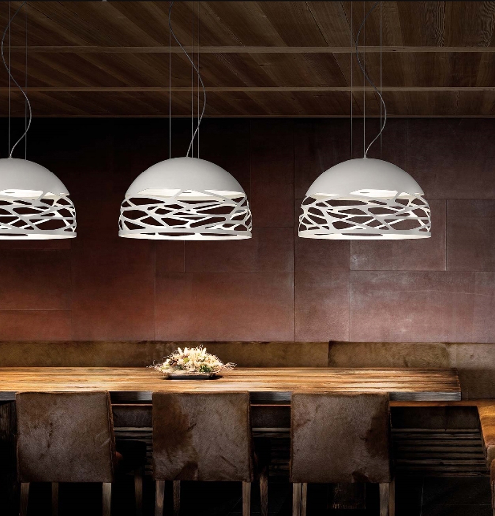Laserowo wycinany klosz lampy Kelly Dome pozwala światłu swobodnie przepływać, tworząc piękną grę w pomieszczeniu. Lampa daje przyjemne światło, dlatego idealnie nadaje się do umieszczenia nad stołem jadalnym lub w salonie.