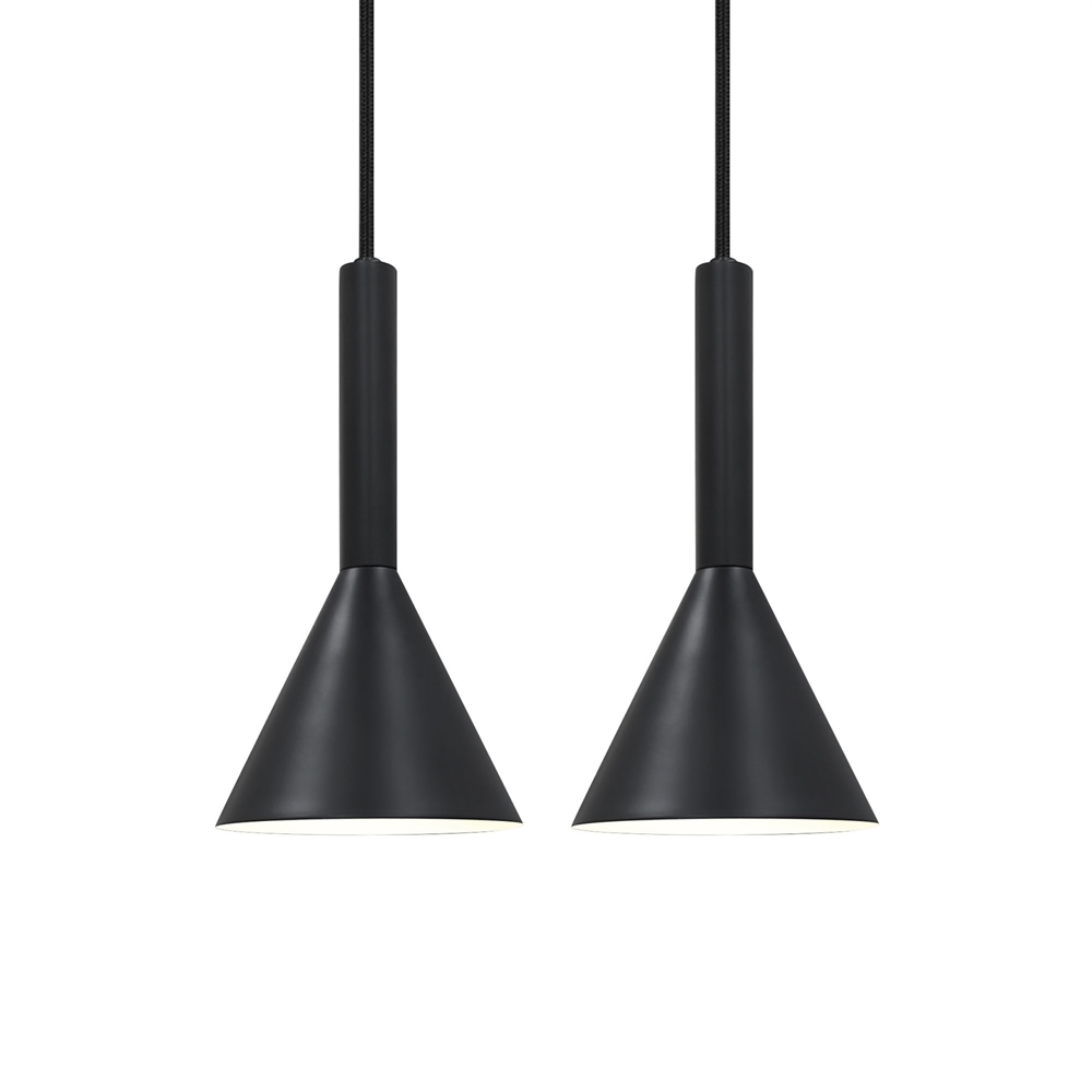 Lampa wisząca Kelvis jest dostarczana w zestawie 2 sztuk z dwiema lampami i stanowi stylowe, nowoczesne oświetlenie, które łączy minimalistyczny nordycki design z praktyczną funkcjonalnością. Czysta, czarna sylwetka pendli tworzy wizualnie elegancki element aranżacji, a jednocześnie zapewnia ukierunkowane światło idealne nad stół jadalniany lub wyspę kuchenną.