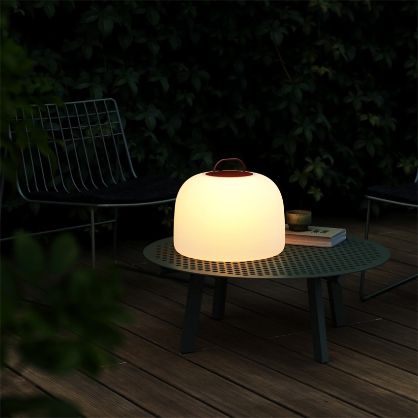 Kettle to piękna lampa na baterie, gdzie funkcjonalność jest priorytetem. W zestawie znajduje się wymienne akcesoria, dzięki czemu można uzyskać typ lampy, który pasuje do indywidualnych potrzeb. Z lampą otrzymujesz sznurek, który umożliwia zawieszenie lampy na baterie w ogrodzie, aby stworzyć przytulne oświetlenie. Dostępne są również szpikulce lub trójnóg, dzięki czemu lampa może działać jako lampa stołowa lub lampa podłogowa. Dzięki okrągłym i miękkim kształtom lampa emanuje spokojem, a jej rozproszony klosz daje delikatne światło.