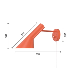 Louis PoulsenKinkiet AJ bez wyłącznika i przewodu, electric orange - Zaprojektowany przez Arne Jacobsen