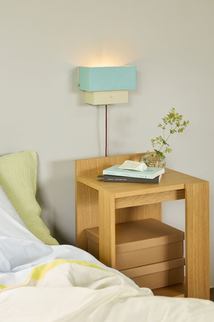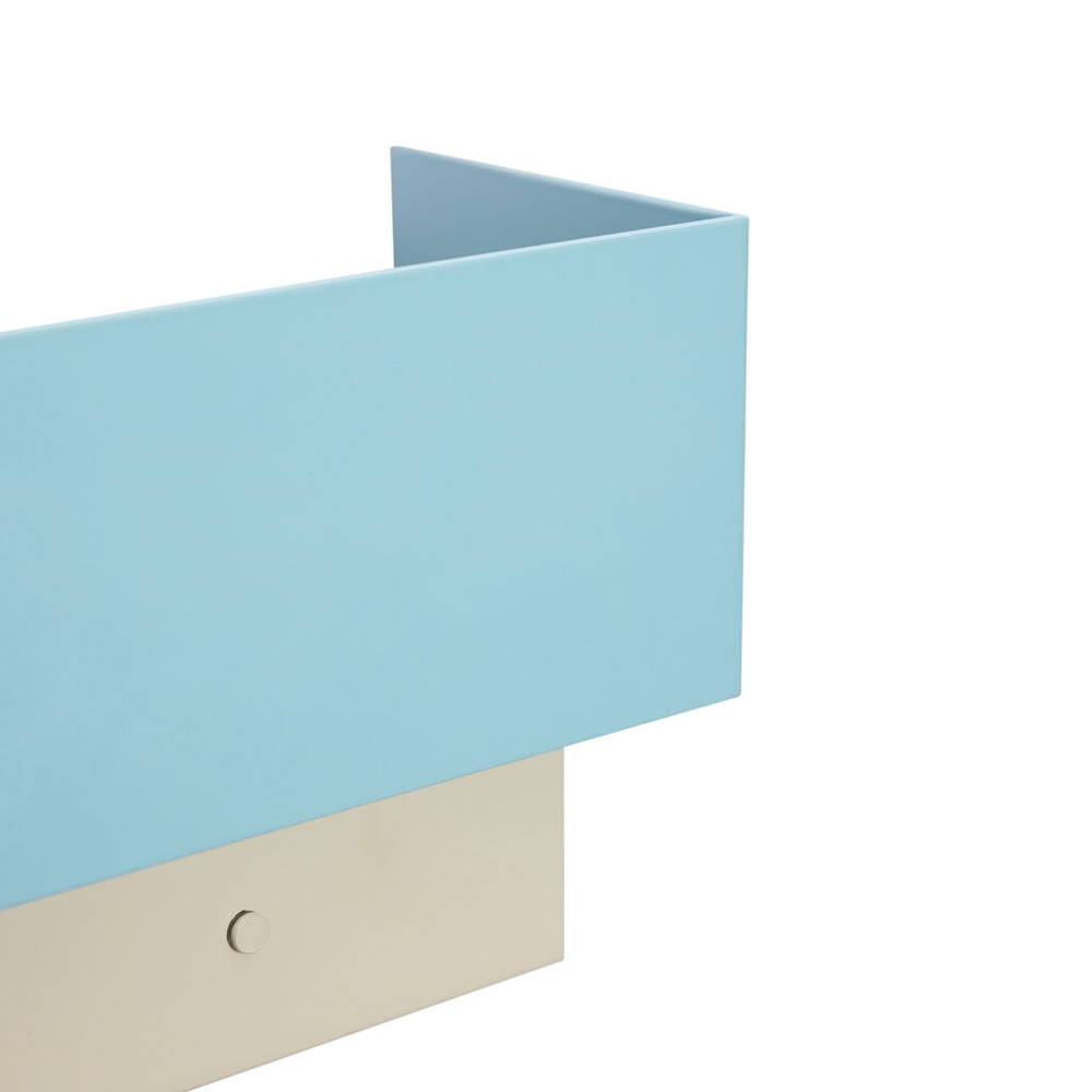 Kinkiet Arte to kompaktowe i dekoracyjne oświetlenie, które łączy delikatne, nastrojowe światło z kolorem i energią w harmonijnym, stonowanym retro stylu. Połączenie niebieskiego i piaskowego koloru przyciąga wzrok, a jednocześnie pozostaje elegancko subtelne, nadając neutralnej ścianie charakter bez przesady.