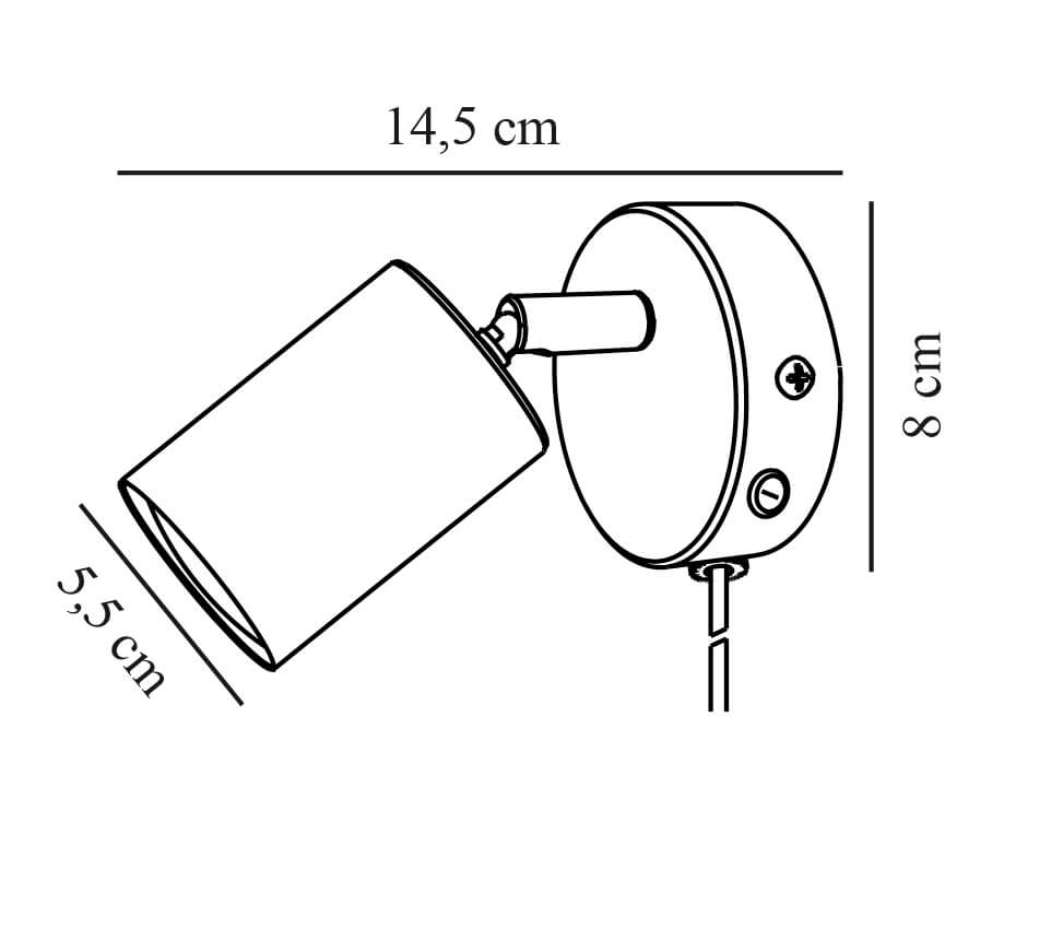 Wymiary: L14,5 cm, podstawa: Ø8 cm, klosz: Ø5,5 cm