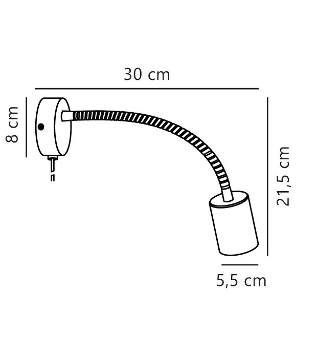 Wymiary: L35,5 cm, klosz: Ø5,5 x H8 cm, podstawa: Ø8 cm