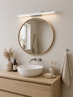 Otis 60 można wykorzystać jako kinkiet na przykład przy lustrze lub zamocować na górze szafki za pomocą dołączonego uchwytu. Kinkiet ma 2-stopniowy Moodmaker™, który umożliwia jednym naciśnięciem standardowego włącznika ściennego włączenie światła z mocą 100%, a kolejne naciśnięcie przełącza jasność na przyjemne światło nocne o strumieniu 35 lumenów.