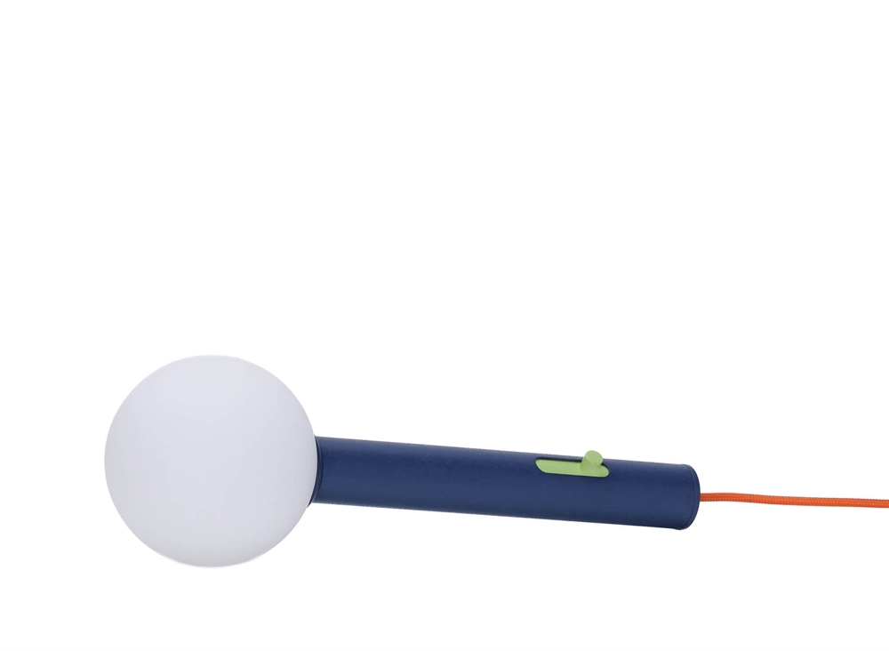 Projekt łatwo wkomponować zarówno w salon, sypialnię, jak i pokój nastolatka. Model dostępny jest w neutralnym jasnoszarym kolorze z niebieskim przewodem oraz w świeżej, niebieskiej wersji z pomarańczowym przewodem, jeśli zależy Ci na bardziej kolorowym efekcie.
