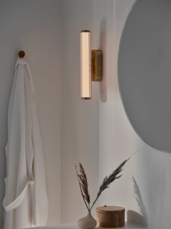 Z Virelle zyskujesz wysokiej jakości oświetlenie do wiatrołapu, korytarza i łazienki lub do każdego innego pomieszczenia, w którym potrzebujesz stylowego oświetlenia o nowoczesnym charakterze. Kinkiet jest dostępny w dwóch rozmiarach w kolorze czarnym lub mosiężnym.