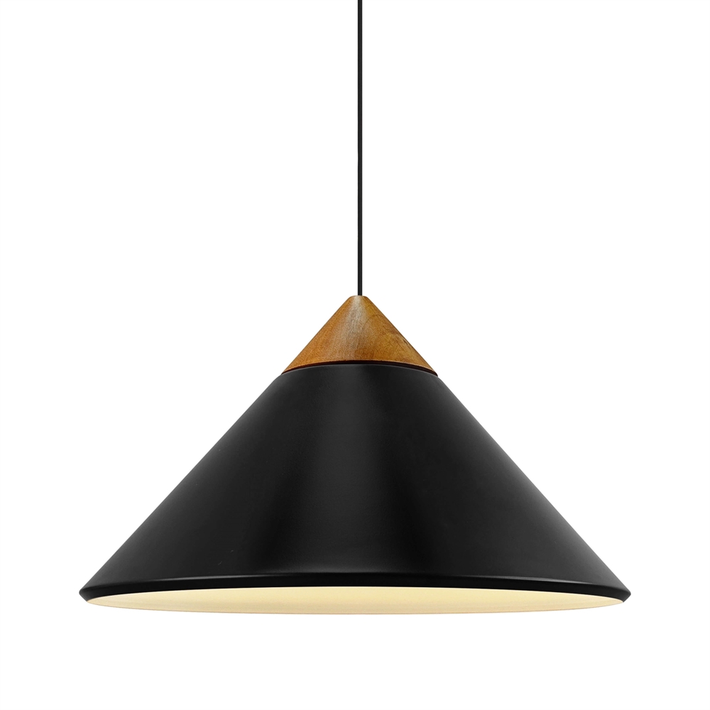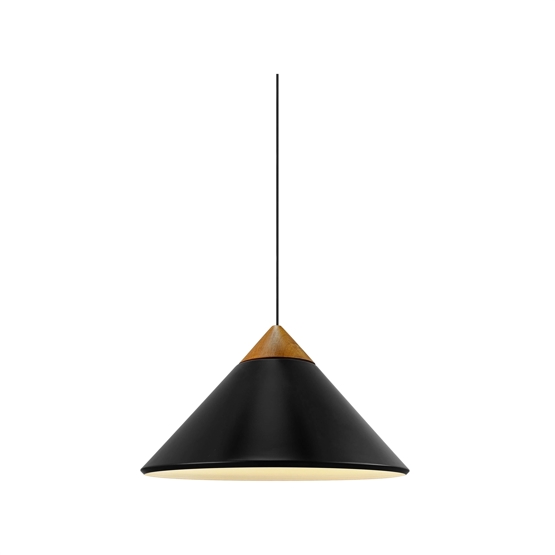 Lampa wisząca Kinto ma nowoczesny i minimalistyczny design z kloszem w kształcie stożka, który będzie idealny nad stołem jadalnym lub kuchennym. Oprócz funkcjonalnego światła skierowanego w dół, światło jest również emitowane przez otwór na górze klosza, tworząc piękny efekt świetlny. Lampa wisząca jest wykonana z metalu z eleganckim wykończeniem z ciemnego drewna i detalami z brązowanego mosiądzu.