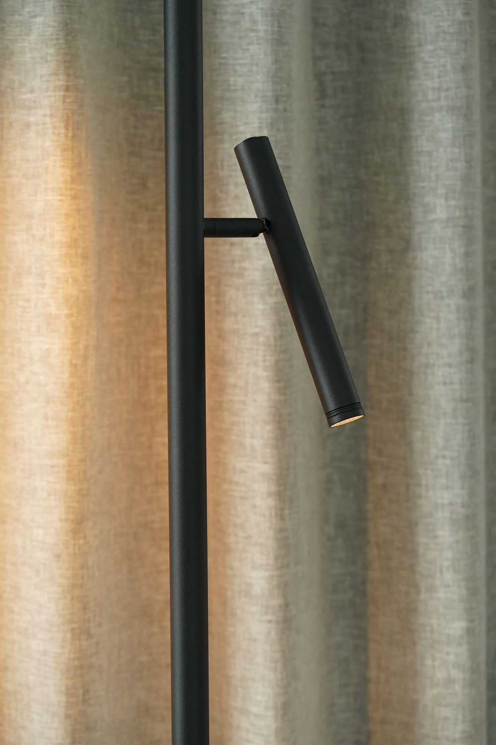 Dwa spoty w smukłej lampie podłogowej można regulować niezależnie od siebie i każdy z nich ma własny ściemniacz dotykowy, dzięki czemu łatwo dostosujesz jasność od wyraźnego światła do pracy po bardziej stonowane, przytulne oświetlenie.