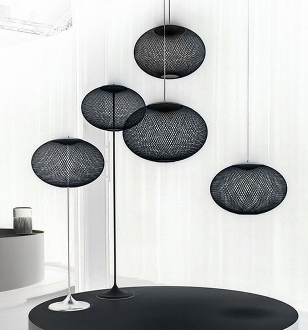 NR2 jest dostępna jako lampa wisząca oraz lampa podłogowa w kolorze czarnym lub białym.