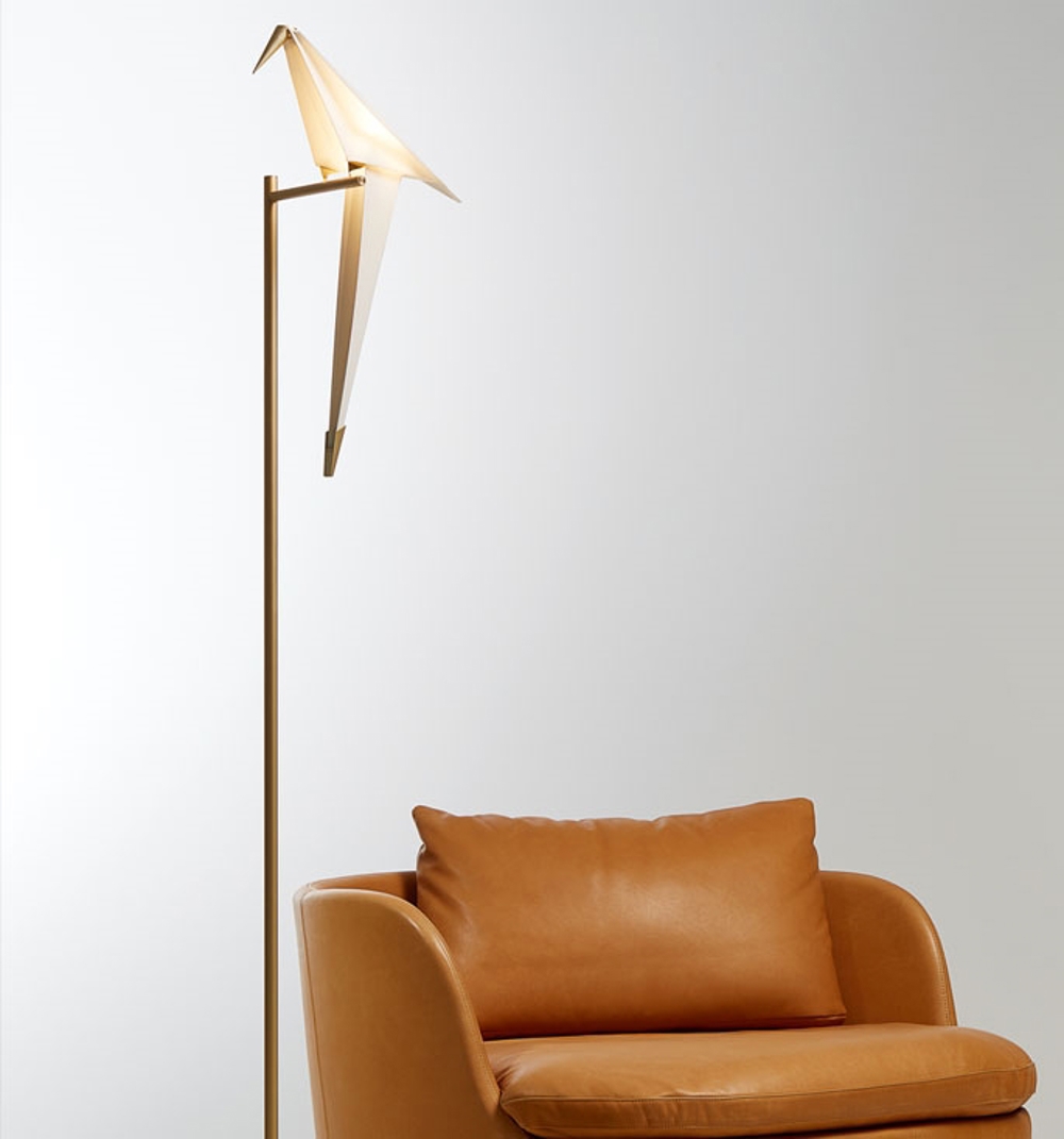 Lampa podłogowa Perch Light składa się z 1 abstrakcyjnego ptaka na wysokiej gałęzi, który daje piękny blask w pomieszczeniu. Jeśli delikatnie dotkniesz ptaka, może się kołysać, co dodaje mu jeszcze więcej życia