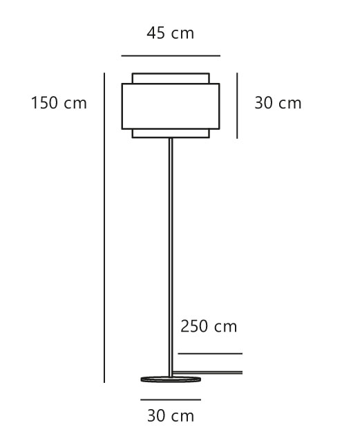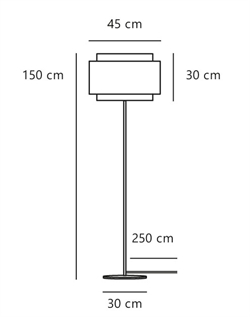 Wymiary: Wys. 150 cm, abażur: Ø45 x Wys. 30 cm