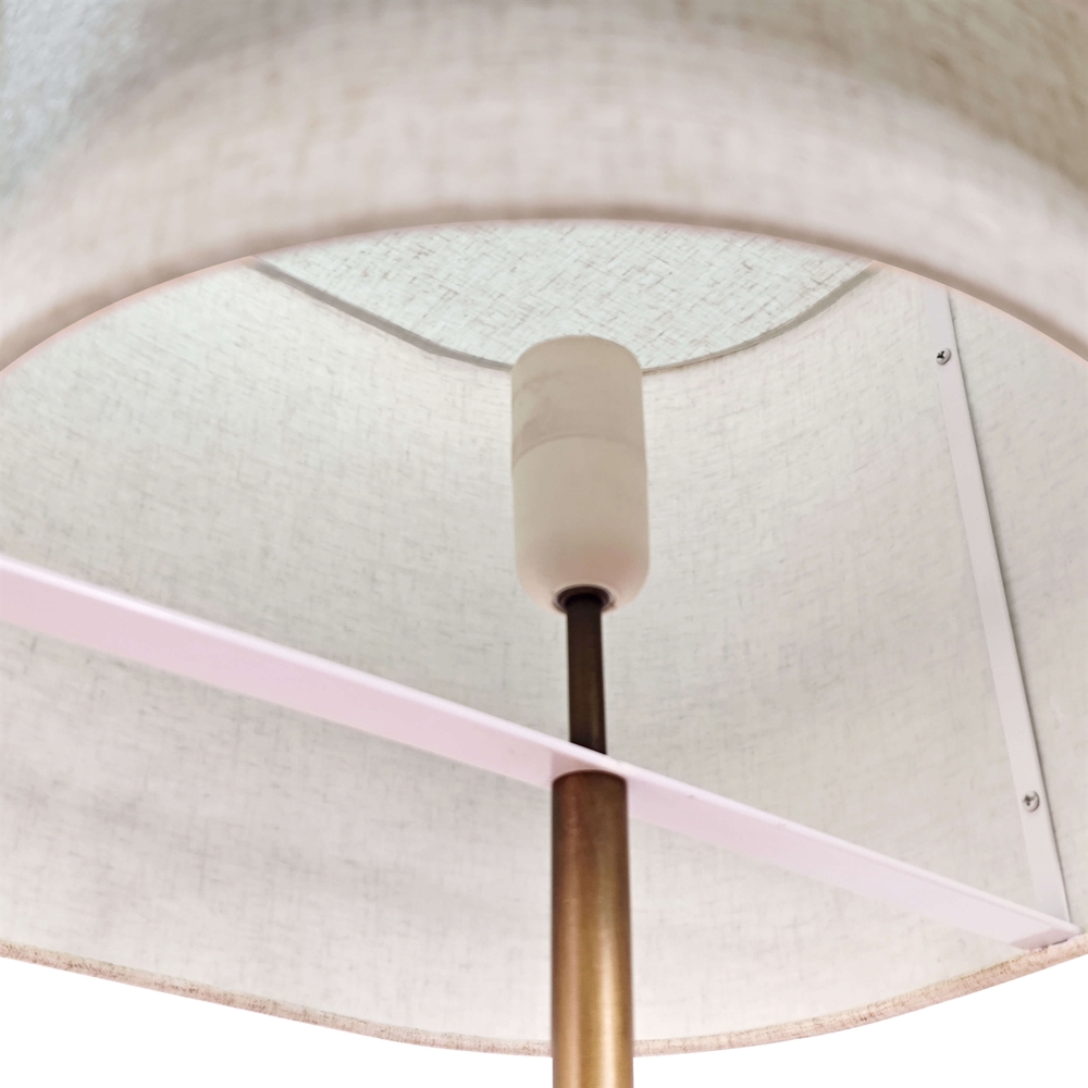 Lampa podłogowa Takai ma miękki i ciepły wygląd z pięknym abażurem z lnu i podstawą z brązowanego mosiądzu. Duży lniany abażur zachęca do oglądania lampy podłogowej z różnych perspektyw i przyczynia się do uczynienia lampy centralnym elementem wystroju.