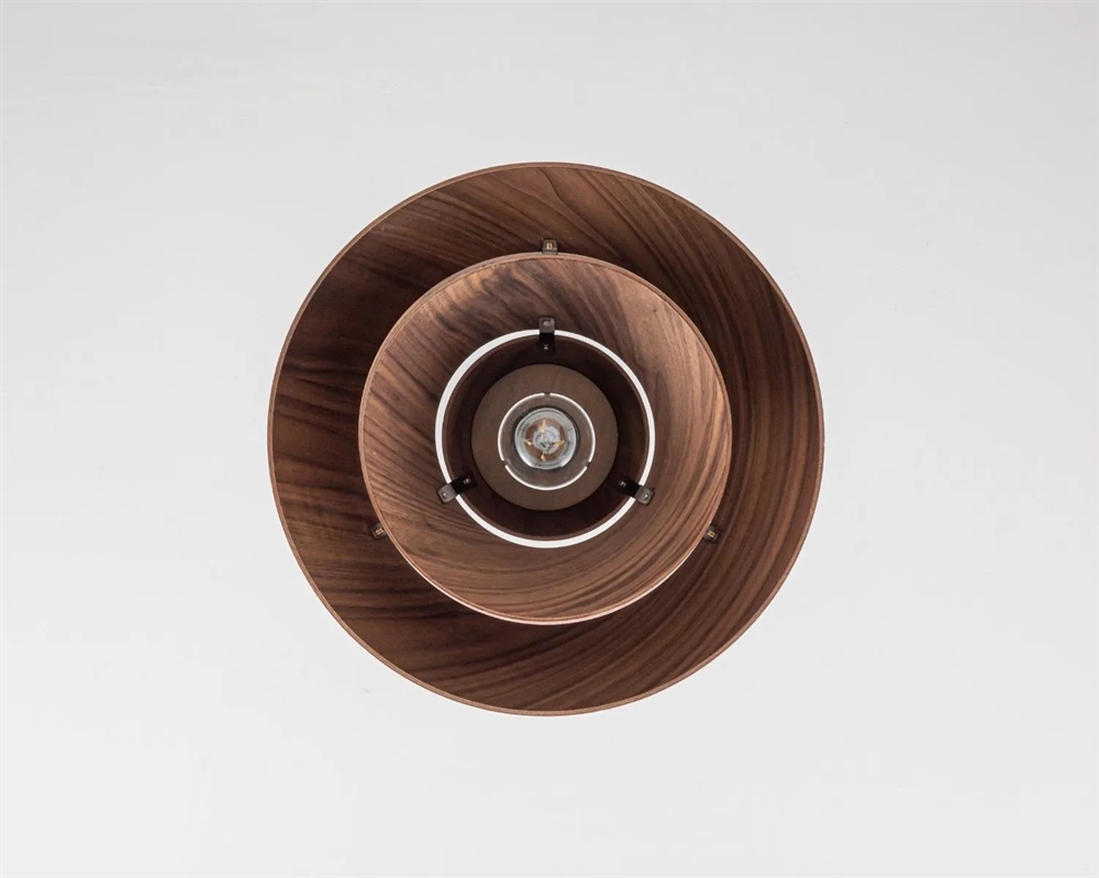 Forma lampy zbudowana jest z asymetrycznych warstw drewna, które tworzą dynamiczną grę światła i cienia. Światło jest miękko filtrowane przez przesunięte warstwy, co zapewnia przyjemne i nastrojowe oświetlenie, a otwarty spód gwarantuje bardziej bezpośrednie i funkcjonalne światło skierowane w dół.