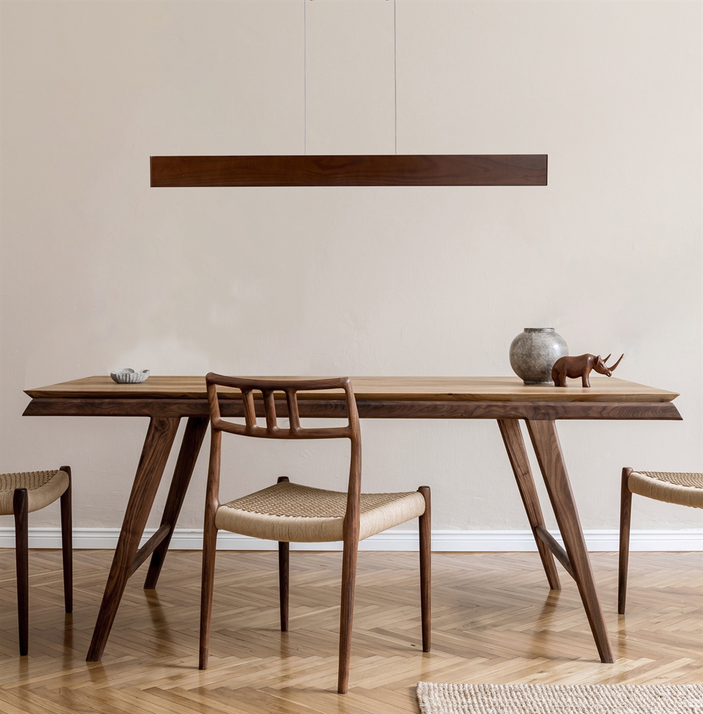 Lampa wisząca Flora to smukła i stylowa lampa zaprojektowana dla osób, które cenią czyste linie i naturalne materiały. Liniowa forma nadaje jej lekki i elegancki charakter, dzięki czemu świetnie sprawdzi się nad stołem w jadalni i wyspą kuchenną, a także jako dekoracyjne oświetlenie w strefie lounge lub w biurze. Flora ma piękne wykończenie drewna i minimalistyczny design ze zintegrowanym źródłem światła LED, które emituje ciepłe i równomierne światło, tworząc przyjemną atmosferę we wnętrzu.