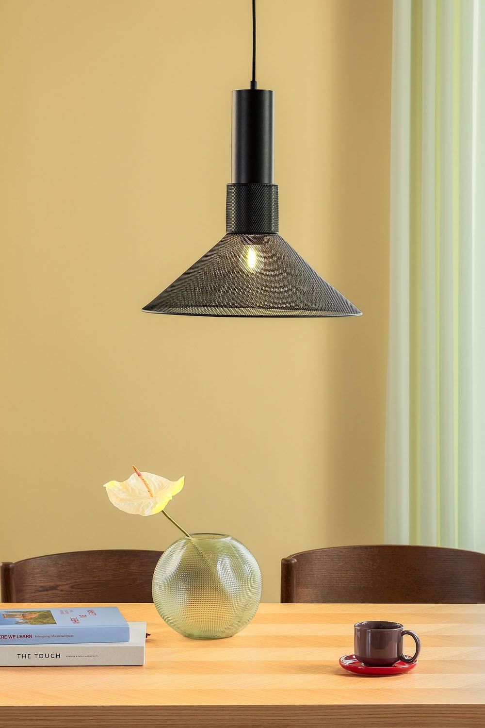 Lampa wisząca Ray to minimalistyczna lampa o smukłym i ponadczasowym designie. Styl idealnie pasuje do nowoczesnych wnętrz, gdzie lampa zapewnia funkcjonalne oświetlenie, nie dominując wizualnie przestrzeni. Druciana siatka klosza, gdy lampa jest włączona, tworzy subtelną grę światła na suficie i ścianach oraz buduje atmosferę elegancji i uroku.