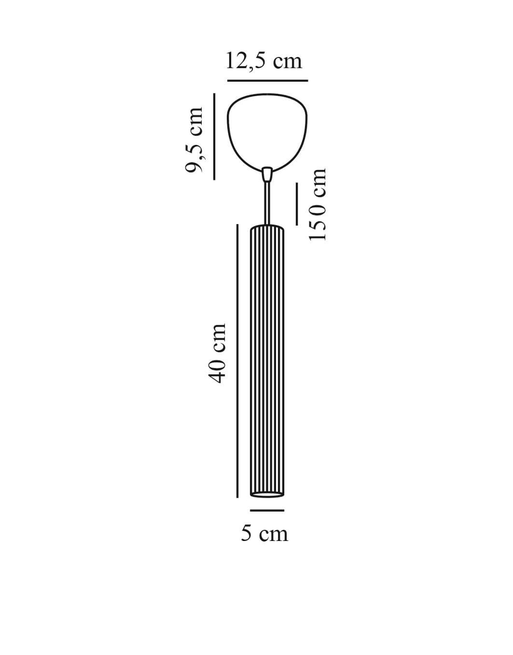 Wymiary: rozeta: H9,5 x Ø12,5 cm, klosz: H40 x Ø5 cm