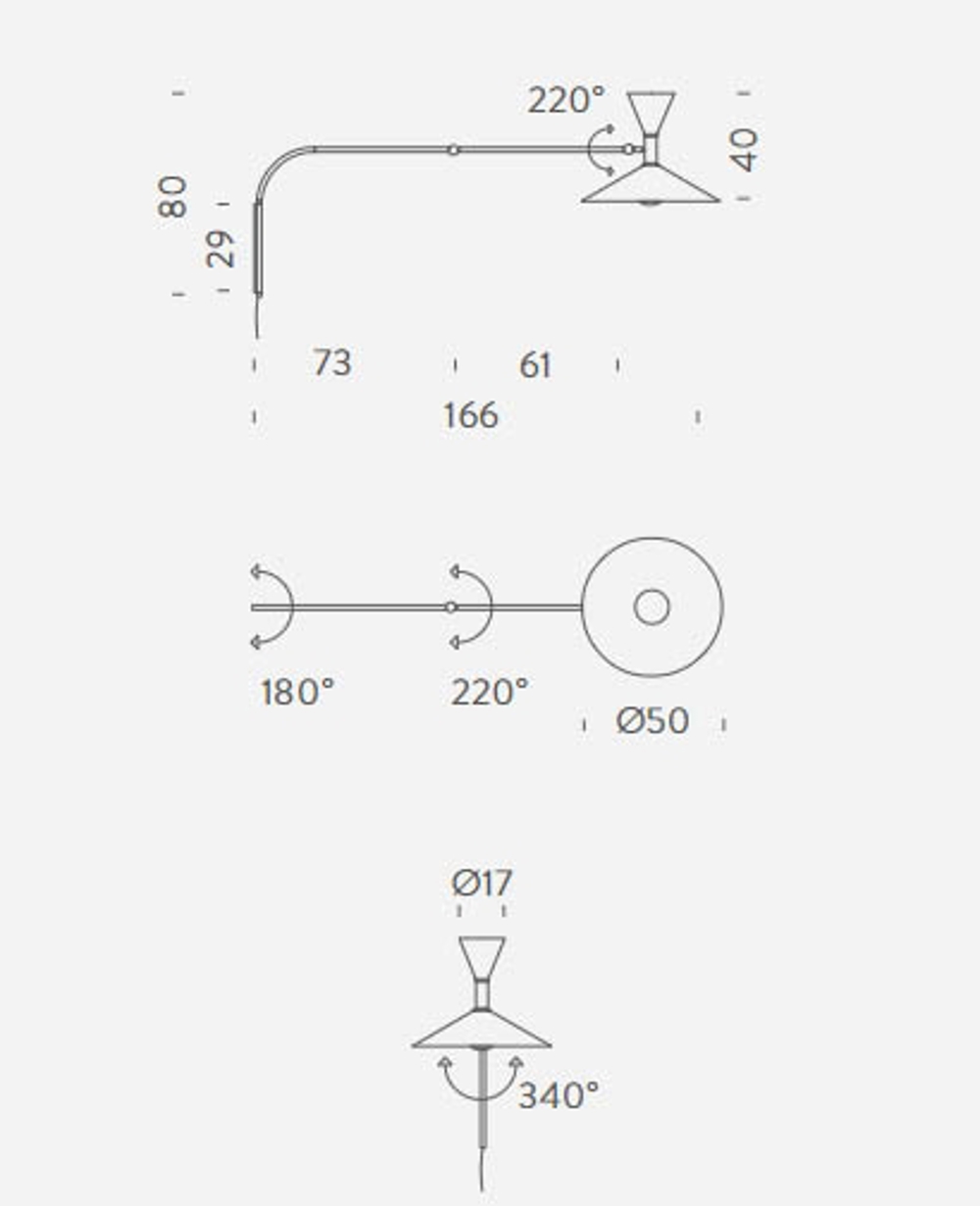 Lampe de Marseille kinkiet ma dwa obrotowe przeguby, jeden przy ścianie, a drugi przy kloszu. Oznacza to, że lampa jest bardzo regulowana i może być dostosowana do każdego potrzeby.