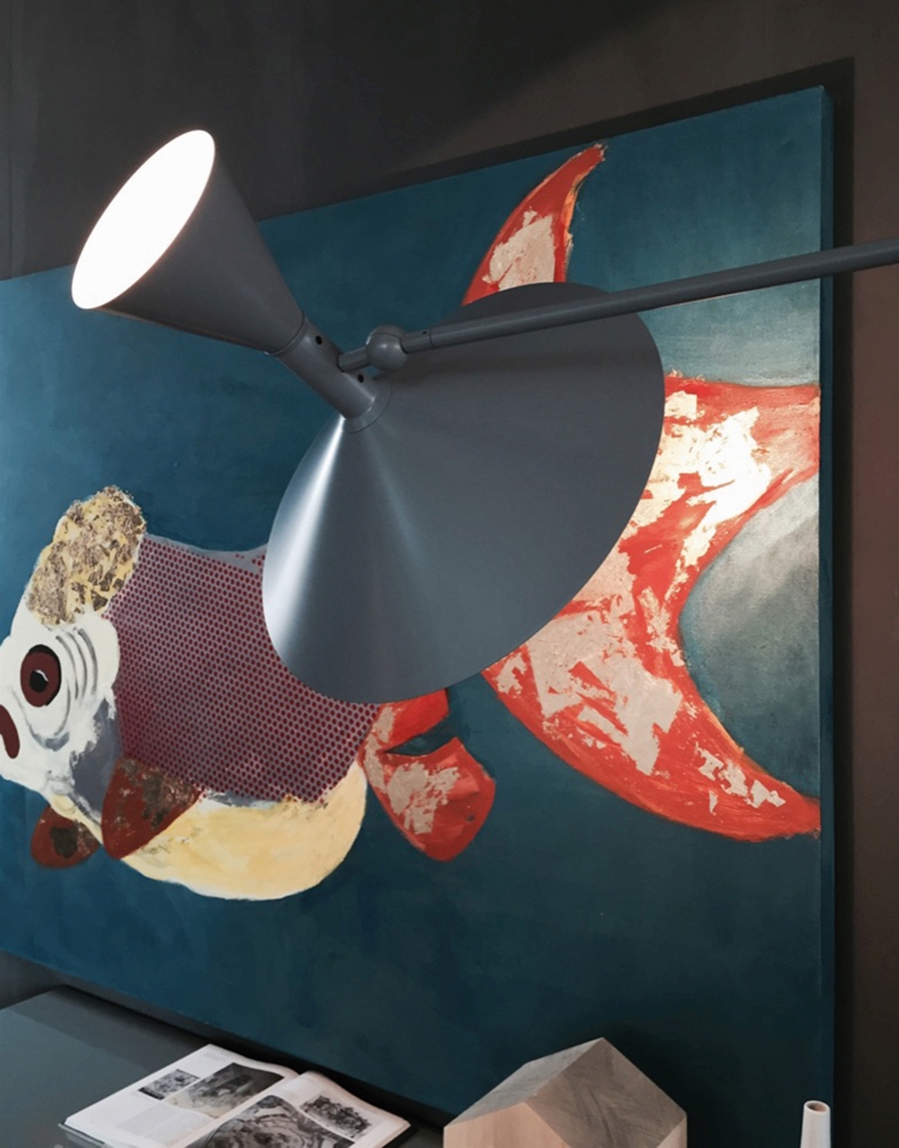 Lampe de Marseille kinkiet jest wykonany z aluminium i dostępny w kolorze białym, szarym i czarnym.