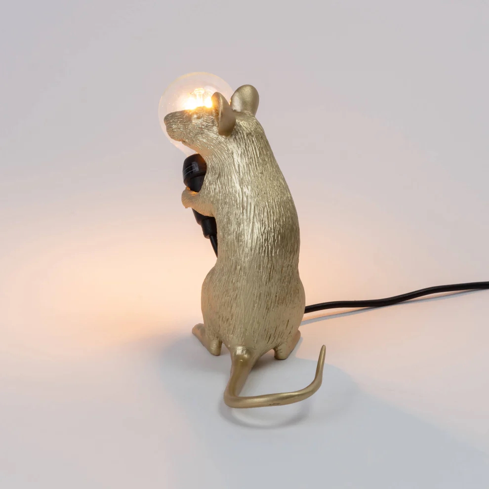 Lampka stołowa Seletti Mouse - Mac Gold sitting z kablem USB