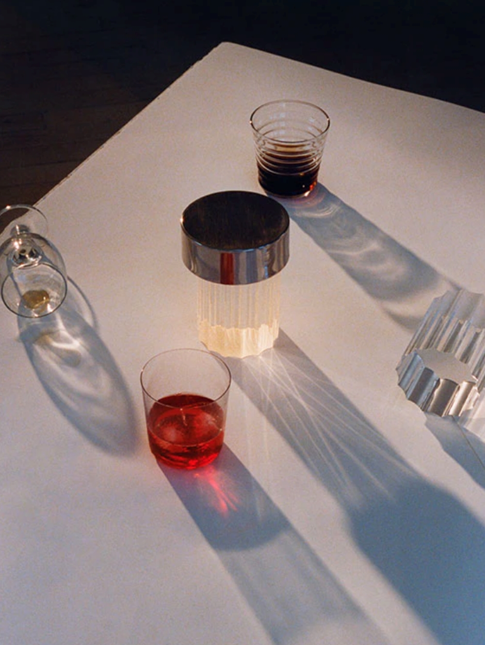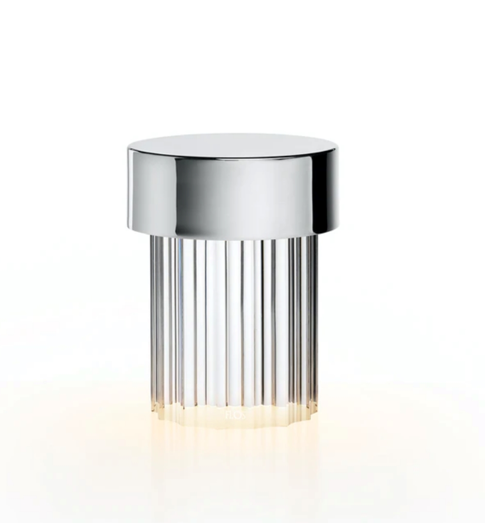Flos Last Order to ładowalna lampa stołowa, która emituje światło przez przezroczystą solidną podstawę szklaną, której forma nawiązuje do architektonicznej typologii antycznej kolumny. Górna pokrywa dostępna jest w różnych metalowych i kolorowych wykończeniach: stal nierdzewna, mosiądz, satynowana miedź lub zielona opalowa powłoka