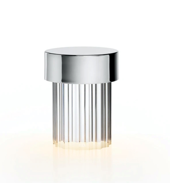 Flos Last Order lampa na baterie / lampa stołowa żłobiona, stal nierdzewna - zaprojektowana przez Michael Anastassiades.