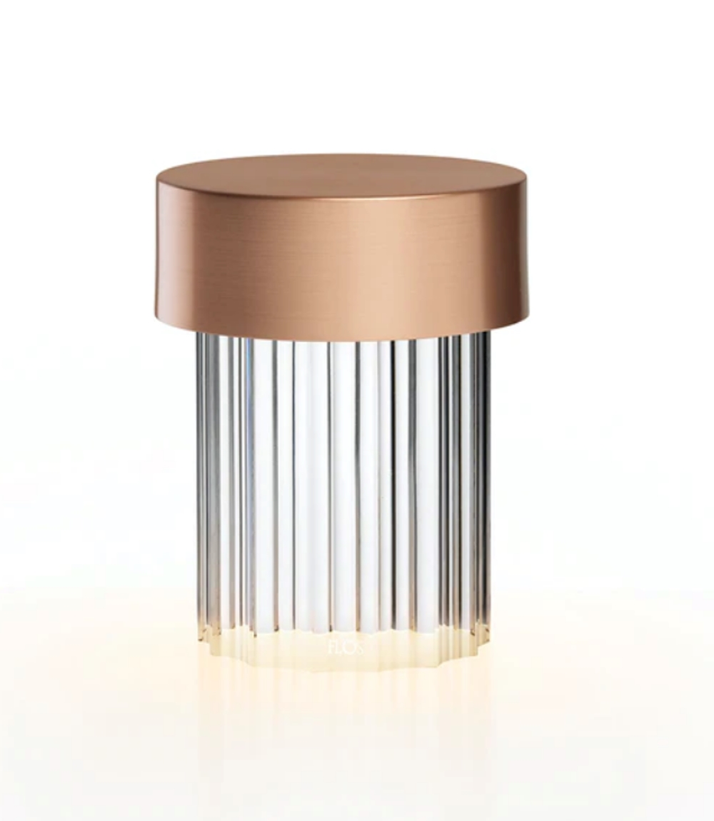 Flos Last Order lampa na baterie / lampa stołowa żłobiona, satynowa miedź - zaprojektowana przez Michael Anastassiades.