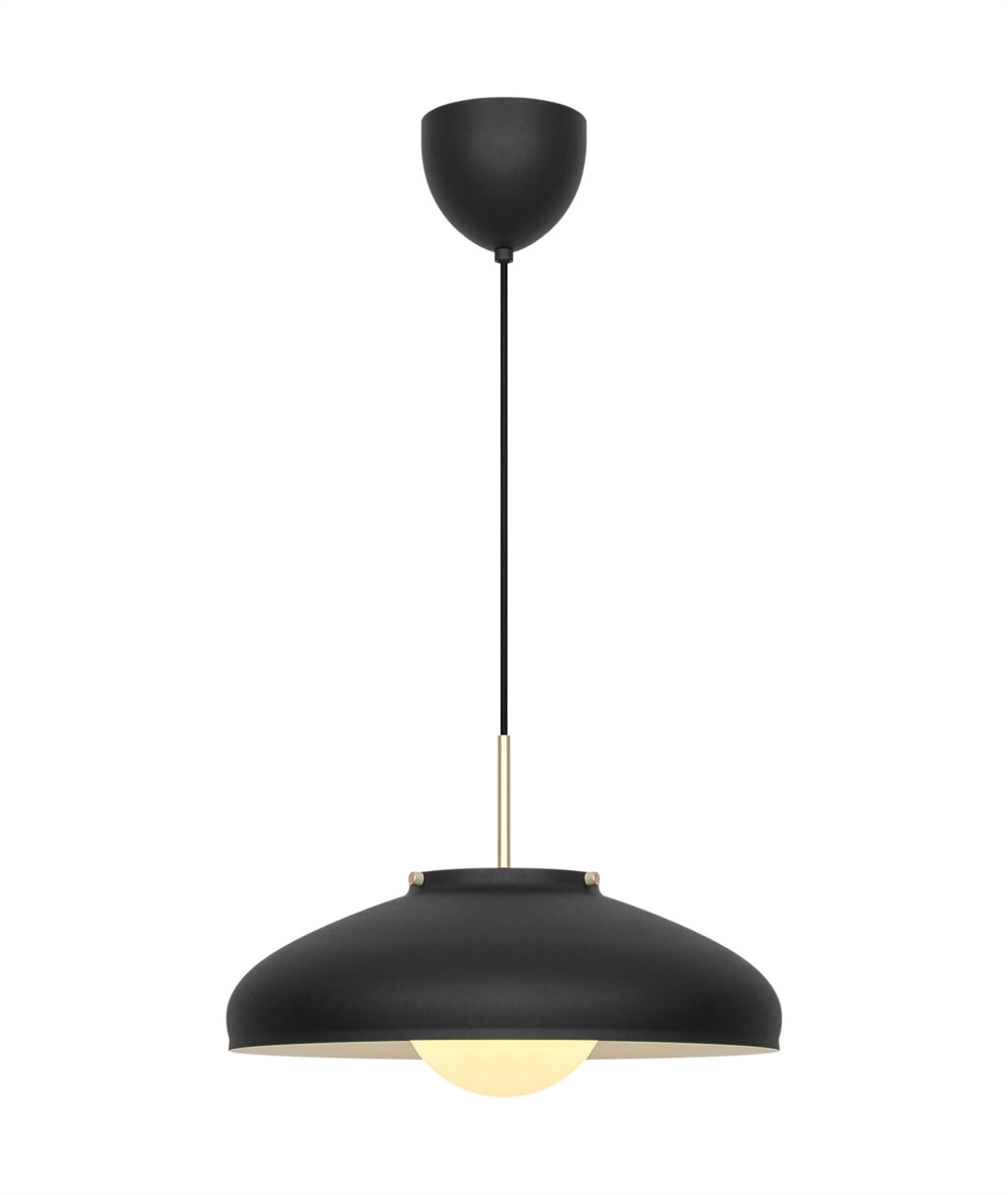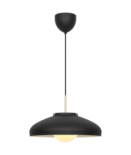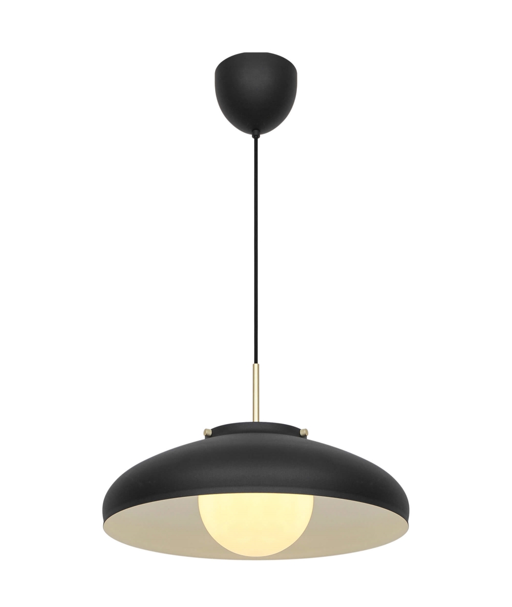 Pendel Latif ma nowoczesny i elegancki design z kloszem z surowego metalu i detalami z szczotkowanego mosiądzu. Okrągły dyfuzor z opalowego szkła zapewnia miękkie i nieoślepiające światło, co czyni pendel doskonałym wyborem jako oświetlenie nad stół jadalny.