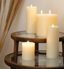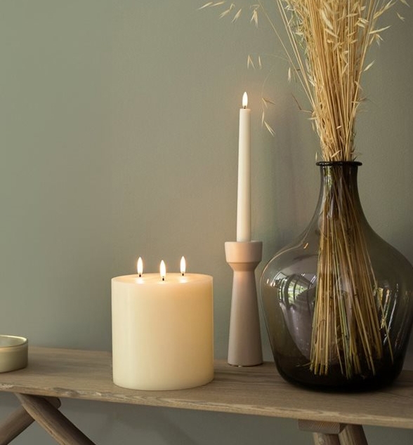 LED Potrójna świeca blokowa wygląda jak tradycyjna, piękna świeca - tutaj z 3 realistycznymi płomieniami LED. Projekt tej LED świecy odtwarza piękno i nostalgię prawdziwej świecy - jednocześnie eliminując ryzyko związane z uwalnianiem związków chemicznych podczas procesu spalania.