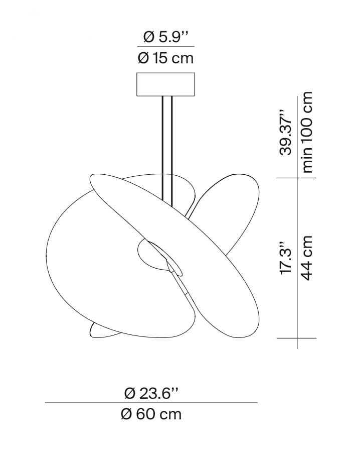 Levante żyrandol ma imponujący design, przypominający organizm unoszący się w przestrzeni. Żyrandol jest idealny do stref wypoczynkowych w domu, gdzie rozprasza przyjemne, jednolite światło. Trzy cienkie płaty są magnetycznie przymocowane do rdzenia zawieszenia i tworzą klosz, który w designie przypomina papier ryżowy.