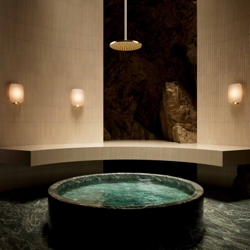 Lampa została pierwotnie zaprojektowana jako lampa łazienkowa, ale może również wisieć w przedpokoju lub innych miejscach w domu.