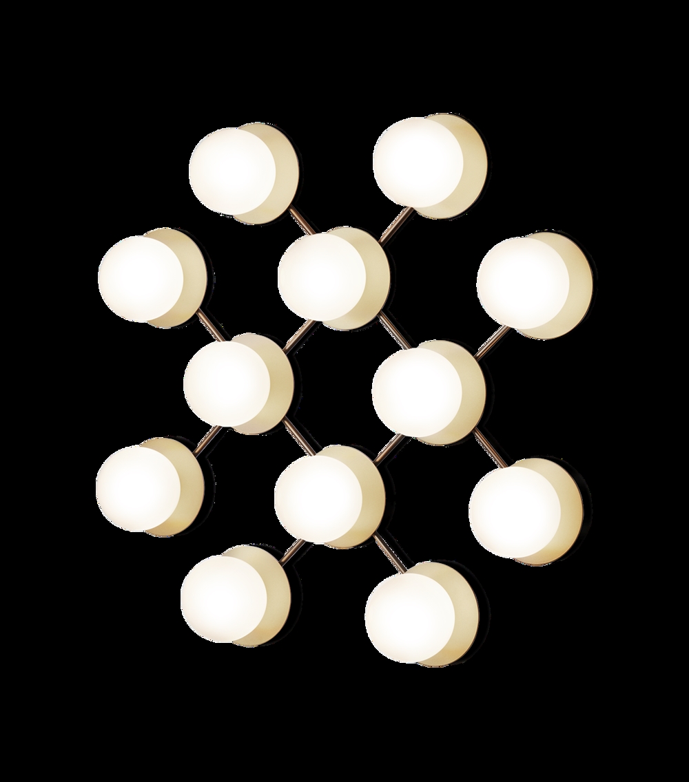 Liila 12 kinkiet / lampa sufitowa, nordic złoto/opal od Nuura - zaprojektowana przez Sofie Refer.